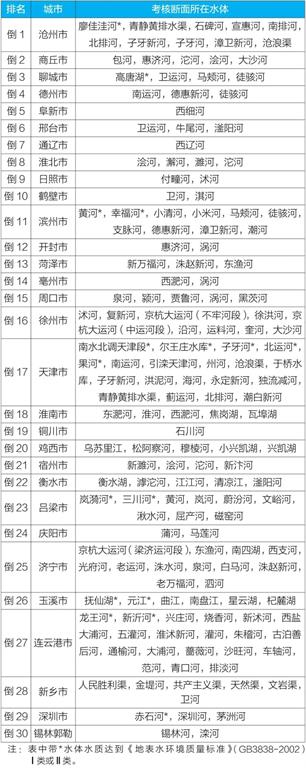 2020年10月國(guó)家地表水考核斷面水環(huán)境質(zhì)量狀況排名后30位城市及所在水體